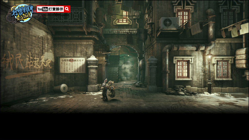 再來說一下世界觀,以蒸氣龐克為基礎打造的風格,有點像FF7魔晄爐車站的感覺,到處就是垃圾,或是蒸氣亂噴,牆面有塗鴉還有海報亂貼,不過說真的這款細節的用心程度,不管是背景的塗鴉/海報/裝飾等等,都有種可以讓我電腦跑不動的感覺,不禁每次路過我都想看海報或是遠景...藏有甚麼葫蘆