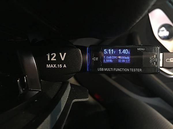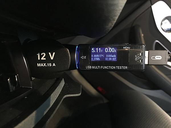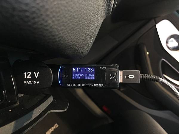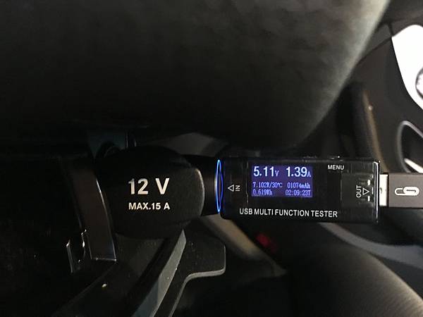 實際測試的結果是,在行駛中確實可以非常穩定的提供設備快速充電的需求,安培數也可以非常穩定的在1.30A~1.45A之間,沒有落差非常大或是不穩定的情況發生。而且因為體積很小,所以不會影響到後座的乘客搭乘的舒適感,加上有氣氛燈引導,就算是夜間行駛中,後座乘客也能輕鬆找到充電器的位置,在我用過的車充中,算是非常推薦的一款。另外一個推薦的點是,這趟跑鹿港單程約費時2.5小時,就算全程充電,直接以手觸摸充電器,也只是溫溫的感覺,沒有過熱的問題(我沒有溫度槍,所以不知道幾度),就算後座有小朋友乘坐也不必擔心會燙傷小朋友。