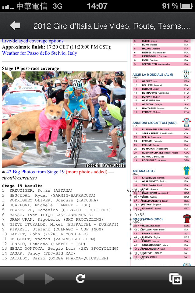 東尼-小提琴 wrote:如果扣除掉車隊的力量...(恕刪) 是2010年吧....當年巴索拉爆苦情男的那一站真是讓人難忘~~~ 此景只能追憶了那年的環義真是好看!今晚這一站最後真精采!!! GC們沒讓大家失望~