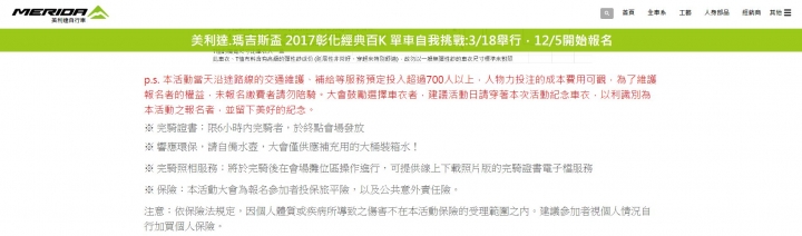 假日車手、如果又晚出發,關門機率不小若樓上說的,最好提早集合我05:30排隊,出發時間是06:17整體來錯很棒的活動,但車友技術不一,自己該慢的時候還是要慢最後4:35:01完賽,明年看看能否進步到4小時內