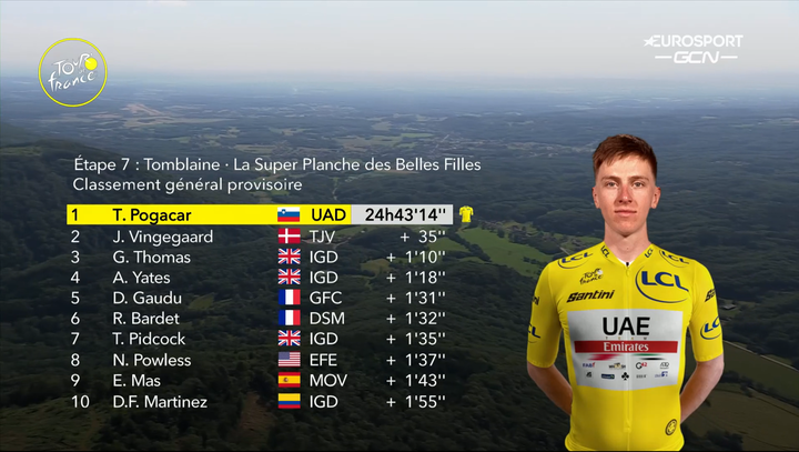 經過第七站美少女高地的廝殺荼毒,第八站怎麼看都該是個兔子站。除非⋯⋯除非又有哪個不開眼的GC想要再挑戰一次Pogačar的恢復能力,這兩天人家可是天線全開的。第八站又跨過邊界,從法國的Dole出發,繼續往東南走186.3公里,抵達瑞士的洛桑Lausanne。題外話,發明疫苗的法國微生物學家巴斯德,兩百年前1822年生於Dole。而位於日內瓦湖北岸的洛桑,是國際奧委會及許多國際組織的所在地。第八站的路線不算太挑戰,雖然總爬升2500公尺,可是就是在山裡上上下下,說是兔子站,也是眾家有能力爬坡好手的菜,兔子群應該就是這些人了。唯一具挑戰性的是洛桑城內,最後五公里到終點的路段。蠻城市賽道的,一堆九十度彎角,加上進入最後兩公里後,平均9.5%, 最大12%的坡。最後幾百公尺是個四線道帶點緩坡的直路,足夠眾衝刺好手全面展開攻勢搶單站了。這一站天氣一樣風和日麗,微微的東北風對賽事而言是側風,但也不是什麼大問題。剩下的變數就是GC們會不會連三站開火。我是覺得不會啦,大家休養生息留到第九站的一級坡再開戰。
