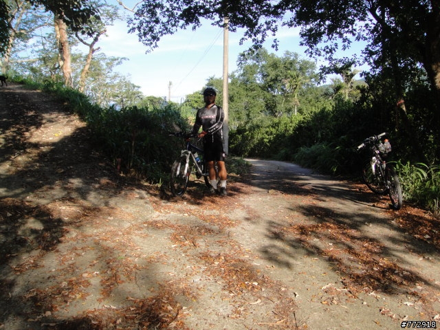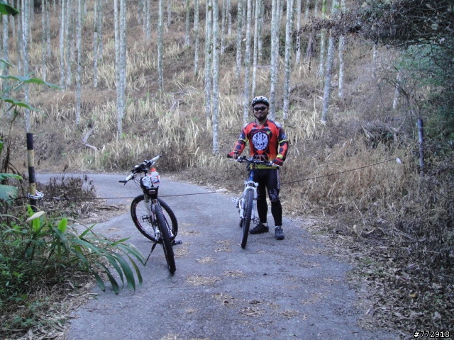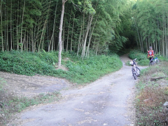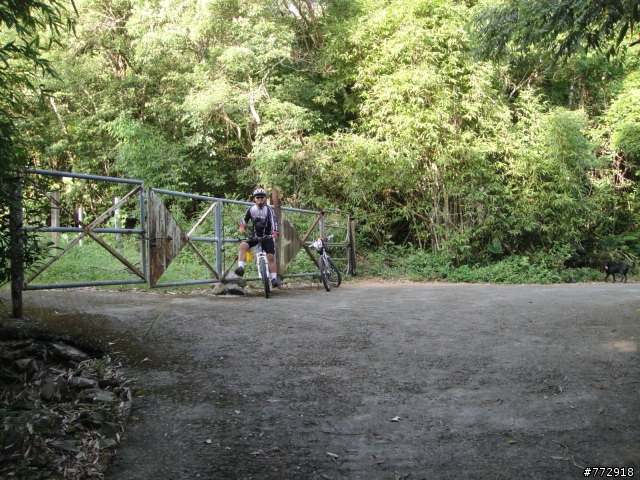 下滑到後來變成泥土路了,老蘇決定不騎了,我則繼續往前騎,還看到有一個地方有柵門,可見有人在這裏耕作,但再過去也是沒路了,只好回頭
