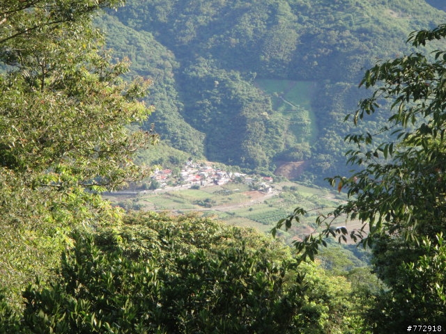 中途也有叉路,就沿著下山的路走就對了,終於看到遠方山腳下的桃源村了