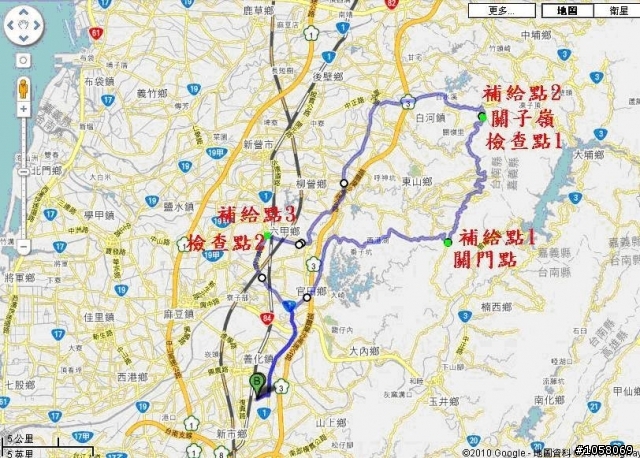 2010.06.20(日) 「登山挑戰系列---台南關子嶺站」探路行... 路線實地拍照...路況相當良好(歡迎修改截用 重新編排)路線:【陽光電城】西拉雅大道→台1省道→南117鄉道→珊瑚路→工研院路→174縣道→175縣道→172縣道→165縣道→174縣道→台1省道→西拉雅大道→【陽光電城】↓台南縣陽光電城~兒南公園↓出發地點:在照片右邊的機車道(西拉雅大道) 出發逆向切出這個路口※西拉雅大道與台1線路口 為T字路口 忘了拍 左轉就對了↓台1線出發到曾文溪橋前 (橋樑擴建施作工程)↓台1線與台84快速道路渡頭交流道↓台1線307K處 準備右轉進入南117 烏山頭水庫 接174縣道↓南117鄉道 沿這條路一直走經過國3涵洞 就是烏山頭水庫 接174縣道↓轉過去南117↓工研院路右轉174縣道↓進入174縣道 我就被海放了...↓惠民兄不知道在174縣道38.2K看到這幾隻雞會不會很幹 祝惠民兄早日康復↓在174縣道看到這個46.5K指標 前面100m就是東山休息站(第一個補給點)↓ 174接175東山休息站(第一個補給點)↓ 175縣道末端 這邊去就是關子嶺了↓175指標20k 也就是還要騎19km才能到第二個補給點(第一個檢錄點)↓看看這上坡↓再看看這風景 一切這麼美好↓加油 加油~ 撐到指標4k就是椪柑指標 開始下坡↓很難得會看到「奉茶」在我小時候老爸騎機車進入山區常常看到....社會變遷 奉茶可能只有台南縣境内的派出所才敢喝了↓白蓮霧 掉滿地↓青山休憩站 覺得水不夠 還是需要運動飲料.蠻牛.巧克力等等 一定要在這兒補給 (175指標13.8k)↓175縣道指標11.5K大鋤花間 算是中間最高點↓已經10:17 我還在南寮↓南寮椪柑指標 一定要右轉 右轉後就是長下坡 不要太快 有急彎處↓關子嶺市區街道↓關子嶺第二補給點 第一檢錄點(175指標1k)※接紅葉隧道沒有拍 一定要左轉172縣道 往白河市區↓172縣道 看到這座人行路橋 就是白河市區到了↓這個路口 記得左轉 往165縣道方向走↓165縣道東山段的7-11↓往&[興農人壽]的那條路走就對了 如果不幸左轉 就是往175縣道的方向又上去了↓165縣道指標18k準備左轉↓記得 往國3烏山頭交流道&165柳營方向↓東河派出所 最醒目的指標 就是右邊那隻馬↓165縣道指標26k 準備右轉↓在"卡樂比"便利商店路口右轉 (果毅國小大門)↓果毅村全家便利商店↓全家便利商店斜對面鎮西宮(左邊有廁所)↓鎮西宮旁邊的路標 165左轉六甲 右轉就是去德元埤了↓165縣道指標28k 有樹蔭 最好不要騎到中午很熱↓165和174共同線 記得右轉 左轉又是上去174縣道往去程的路線※插曲: 正中午了 好餓 在165轉174共同線前牛肉麵攤 看到張大哥在吃麵 就順便顧巴豆了...↓165和174共線 第一路口↓可選擇直走往民族街 看到林鳳營的指標左轉接174線道(中山路)↓亦可選擇左轉進去六甲市區 第一個紅綠燈右轉接174縣道(中山路) (有7-11)↓174縣道六甲加油站↓174縣道林鳳營陸橋↓174縣道與台1線路口 記得是左轉[官田]方向↓轉入台1線↓台1線指標299k↓林鳳營牧場到了↓台南縣台1線自行車專用道↓這是第三補給點 也是第二檢錄點 (九品蓮花,台1線指標299.7k)↓台1線 善化農會冰品部 有賣冰 紅茶...↓派出所可以補水 補胎 打氣 尿尿.... 所長也是車友↓善化啤酒廠 有賣特調芒果啤酒 讚!!↓今天我的騎程資訊....