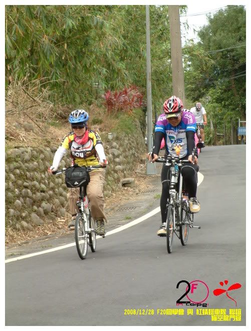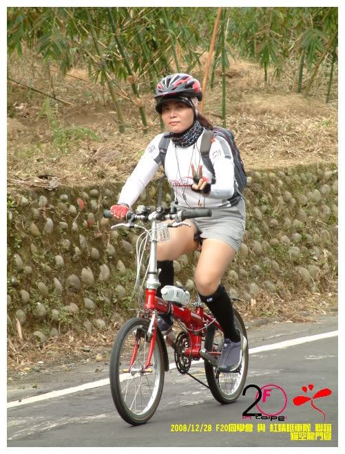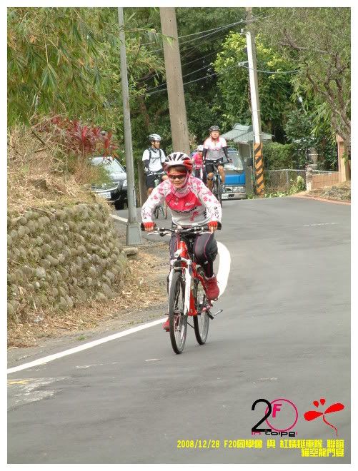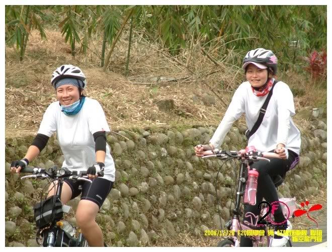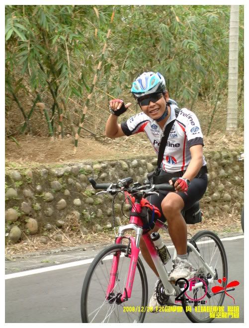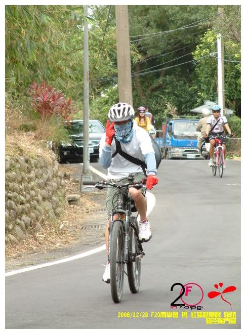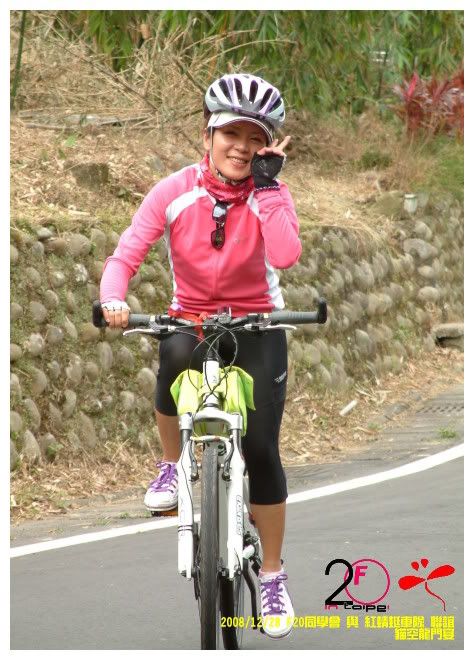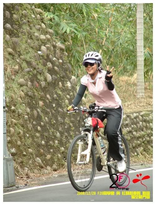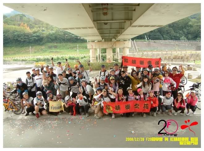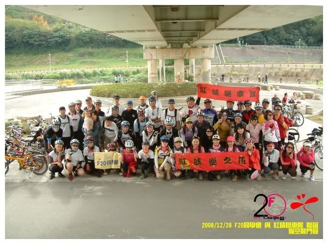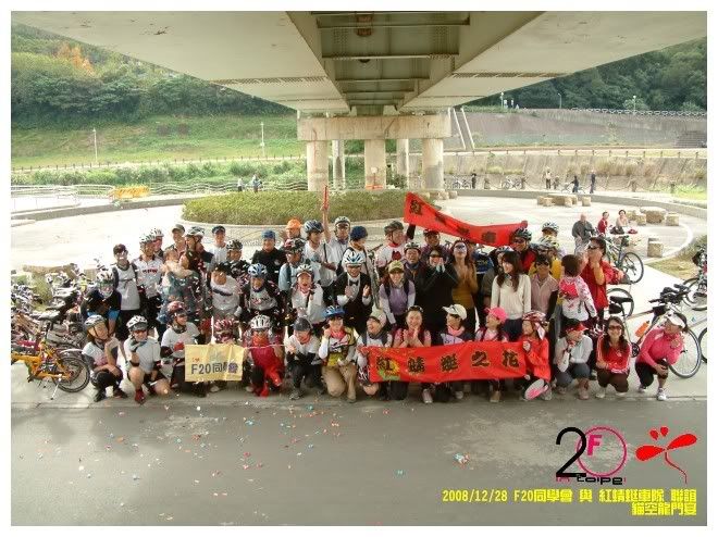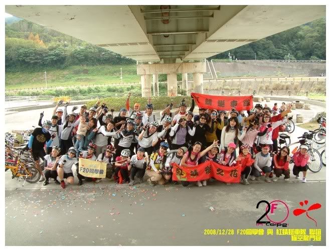 F20的同學們昨天很幸運的與大家共度愉快的一天騎的腳很酸,嘴巴笑的也很酸F20臥虎藏龍高手雲集看各位同學們騎的如此輕鬆我的山路初體驗卻是氣喘吁吁臉色泛白真想趕快擺脫"肉腳"這個名詞哈哈下次有吃吃喝喝輕鬆騎的行程還是小馬說的中社夜騎(中途還可以吃烤香腸)新生愛慢答一定跑第一報名^_^