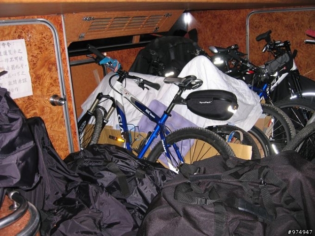 大巴 wrote6+2最多能塞幾台車阿?...(恕刪) 你指的6+2 是遊覽車+卡踏車嗎?我們有過這樣的經驗.提供照片給你參考.如下-->9輛登山車(前後輪都不必拆)+15輛小折.我們一共26人參加唷!