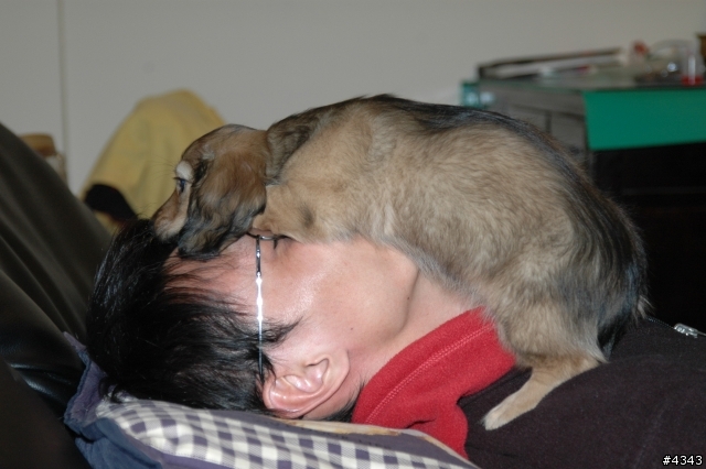 嗚呼呼...好口愛阿!恭喜你囉。跟我們家小嚕米出生的時候一樣...小嚕米出生的時候是全黑的,後來黑色部分逐漸退到背上。照片上是他小時候的樣子,呵呵...還有髮線a超黏人,每天上班都要跟他玩十八相送好幾次....麻薯嚕,軟趴趴..小嚕跟拼股媽媽,一定要抱抱睡覺喔!小嚕還是小朋友喔撒嬌要抱抱...小時候最喜歡的遊戲之一...