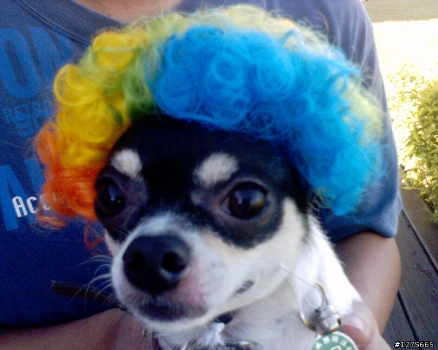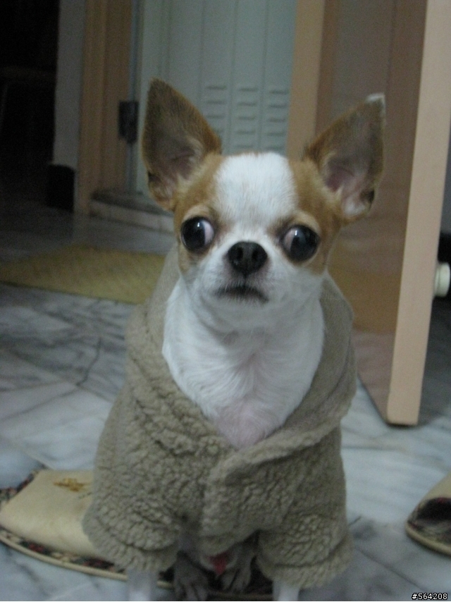我一直以為我們家的哞哞是最大支的吉娃娃了...今天逛到這版以後...原來...他叫作哞哞~小名阿狗(台語)是一支壯的連醫生都驚訝的吉娃娃...大約5公斤上下今年5歲是男生這是他剛來我們家時的樣子還沒發褔前...變身成阿富羅犬=_=表情"看什麼?"的表情戴上柚子皮後...載他出門時的專用車最後來一張笑的很開心的表情
