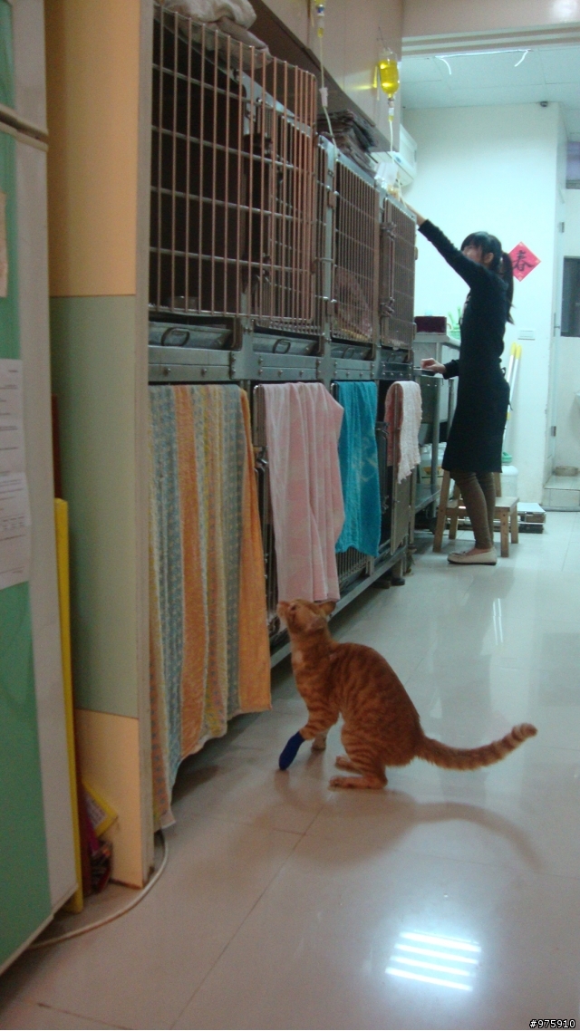 今晚到醫院貓主一家子確認小橘是她走失的貓,所以名字改回丁丁了