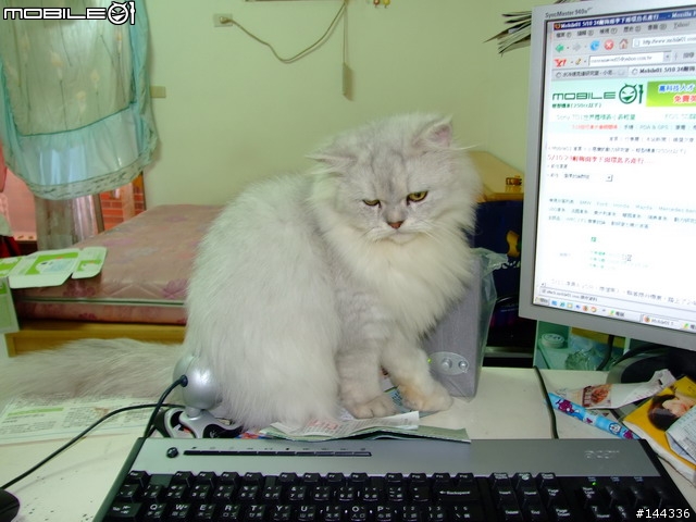 最近每天都在睡..睡飽就跑來電腦桌玩名符其實的OL喵手拿開...哼..不理我..厚無聊..我是OL...喵優雅的OL...你們看..我有皮草圍巾喔鼻孔攻擊...又來了好想踩鍵盤...我踩囉....你咬我啊我家貓奴也上MOBIL01喔....他變宅男了不玩了..想睡..