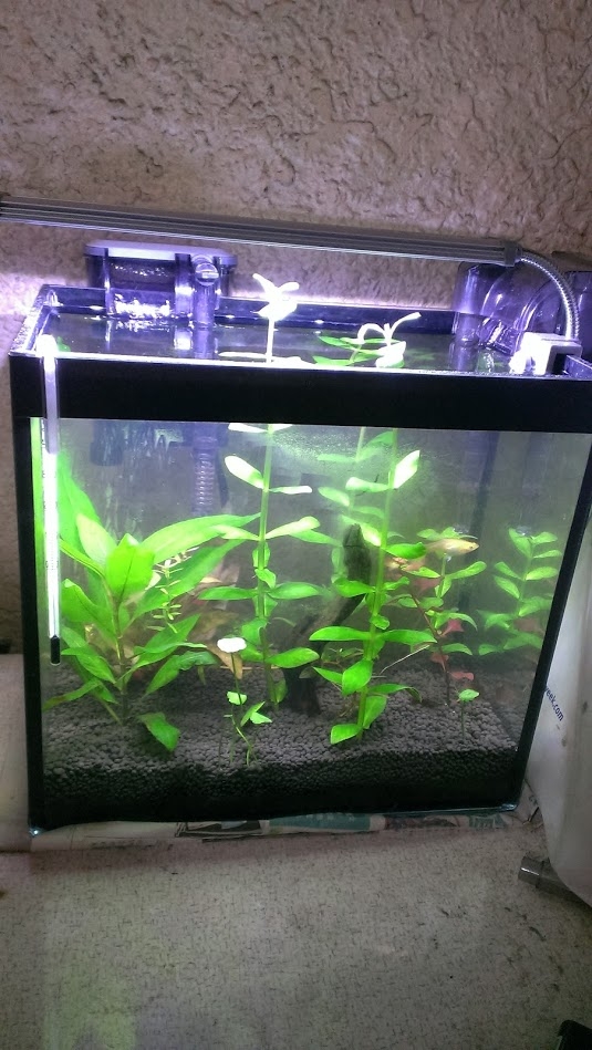 這是我設缸兩個多月的實驗缸,基本上已經很懶得懶人缸了,從頭到尾都沒在顧,連修剪都沒有,另外只加水不換水缸26*17*28,水量約12Lista高之光全白ista黑土一個AP-120外掛120L一個XP-03B外掛160L循環次數23次!我還是覺得不夠,水色沒有我要的標準,礙於現階段的圓筒水流量對於小缸來說都太強,不然真的很想再多補一顆圓筒濾材部分濾棉都用活性炭,AP-120還有放ISTA活性生物珠設缸初期底床有加TBS底床活化粉跟TBS長效根肥草有綠柳+新矮中柳+玫瑰葉底紅+血心蘭+丹麥血紅宮廷+銅錢草生物有小猴一隻孔雀一隻每天添加4CC的2.5%戊二醇造景就沉木一根,下水前有用滾水煮2小時,又丟馬桶水箱約三天這個主要是為了實驗ista黑土崩解速度以及不用液肥與不打碳情況下水草生長狀況,因為普遍認知不打碳能活的水草就是特定那幾樣,所以刻意不用那些草種,還有重要一點就是絕大多數人講的,孔雀在號稱弱酸環境無法生存,我想知道到底孔雀在弱酸環境到底有沒有辦法生存,另外就是水草在沒有水肥與一般正常co2情況下到底生長速度為何草全都是從主缸剪頭移進去的,觀察下來ista黑土大概一個月時間就可以崩解一部分,所以ista不推薦,那速度真的快的太誇張,這次實驗的是用綠色包裝的