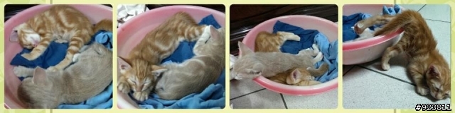 家中共有五個喵星人,除了老大是帥哥以外,其餘都是美女,下列名字依年齡排序:阿呆(乳牛)、阿麥(虎斑)、桃子(虎斑混白)、皮蛋(黑玳瑁)、豆花(三花)五個喵星人只有桃子名字比較正常,但她也是貓體最欠安的一個...難道真的是賤名比較好養嗎?--話說,樓主的惜福=seafood,滿有創意的啊!