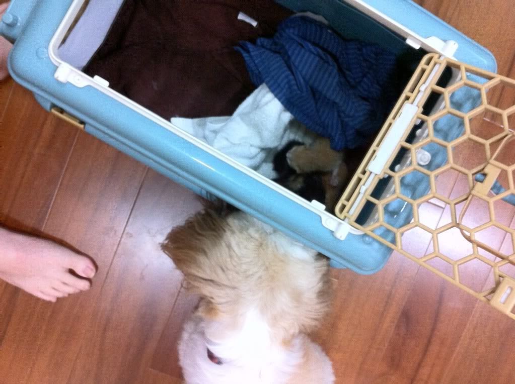 接下來就都很順利了,小貓整天都爬來爬去,有時候還會衝去咬我家的狗
