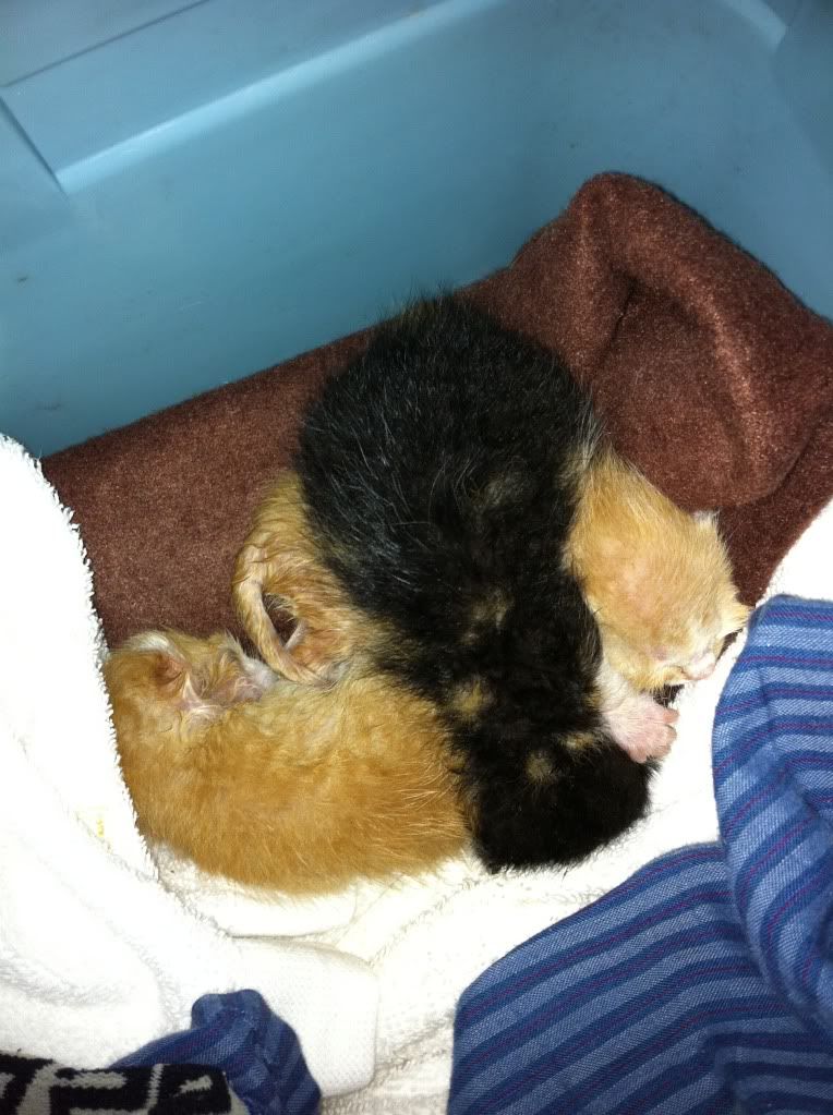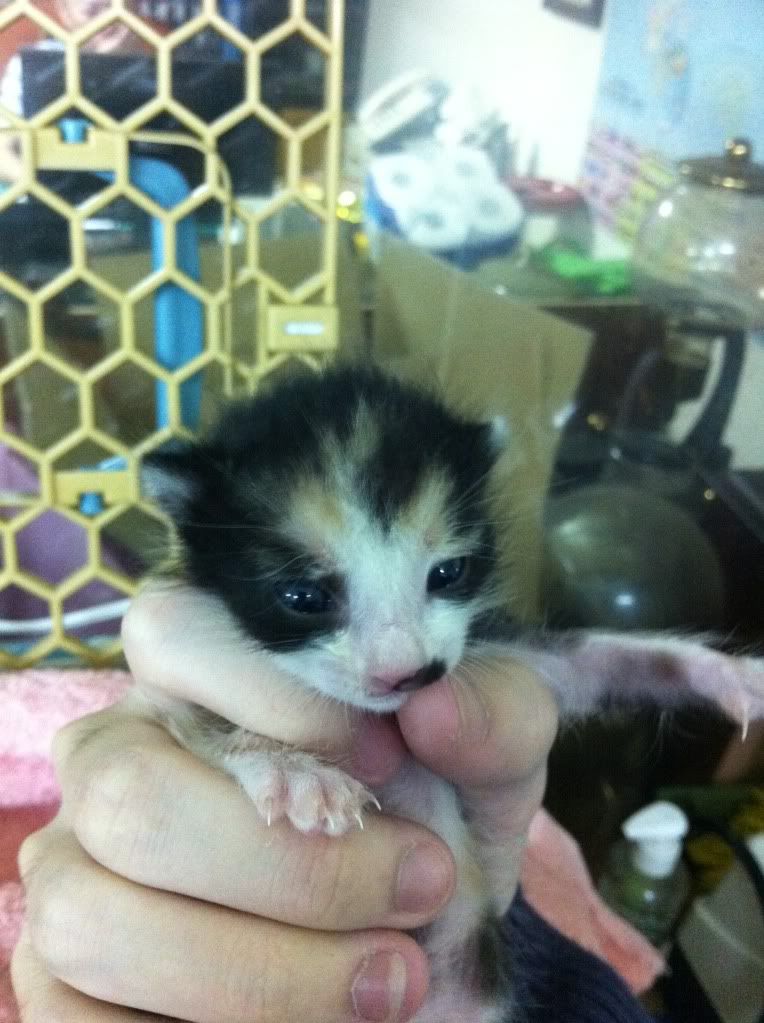 當初在家裡的車庫發現有三隻剛出生不到一個禮拜的小貓