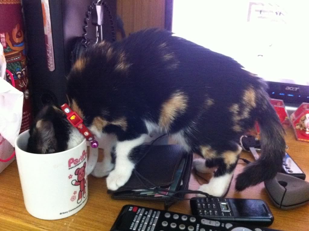 後來問了一下家人,原來是小弟的老爸有去摸小貓