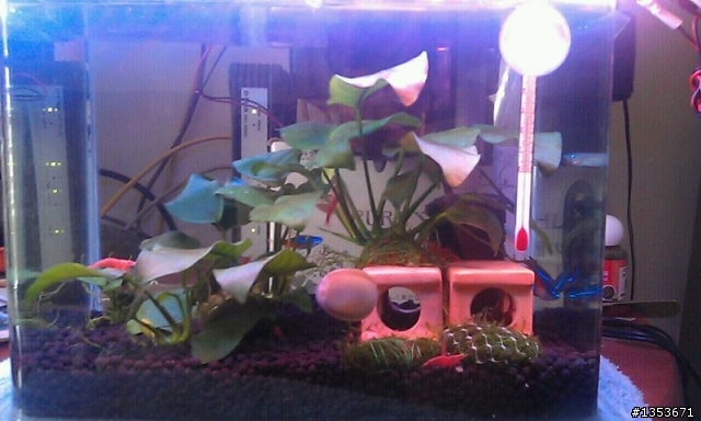 這是從水族館直接抱回全套的一尺缸....淡水魚我用藍色LED燈....裡面總共9隻不知道叫什麼的魚...下面有時十來隻池塘常看到的蝦子就這樣了有什麼問題要改的...可以請專家幫我看看嗎...新手養魚第二天...