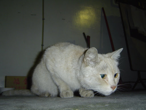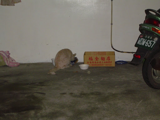 這貓真的是來騙吃的,白天不會出現在該處,晚上約7~11點才會回到該處,接受餵食。