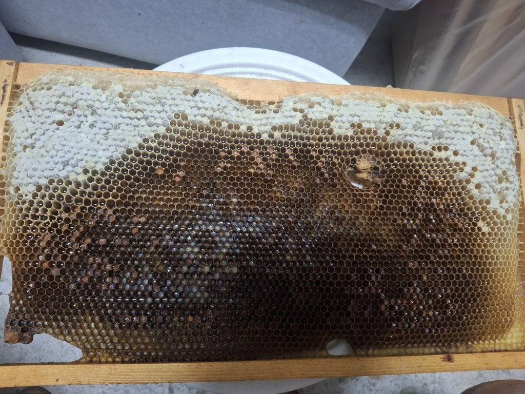 就這樣,從一窩蜂開始,爸爸日日細心照料,觀察蜂王、檢查蜂巢,調整蜂箱的位置。慢慢地,蜜蜂群體壯大起來,不知不覺,從最初的一窩,變成了如今的十窩。每一箱蜂都像是一個小家庭,秩序井然地運作著:工蜂日夜採蜜,雄蜂守護蜂巢,蜂王則是群體的靈魂。