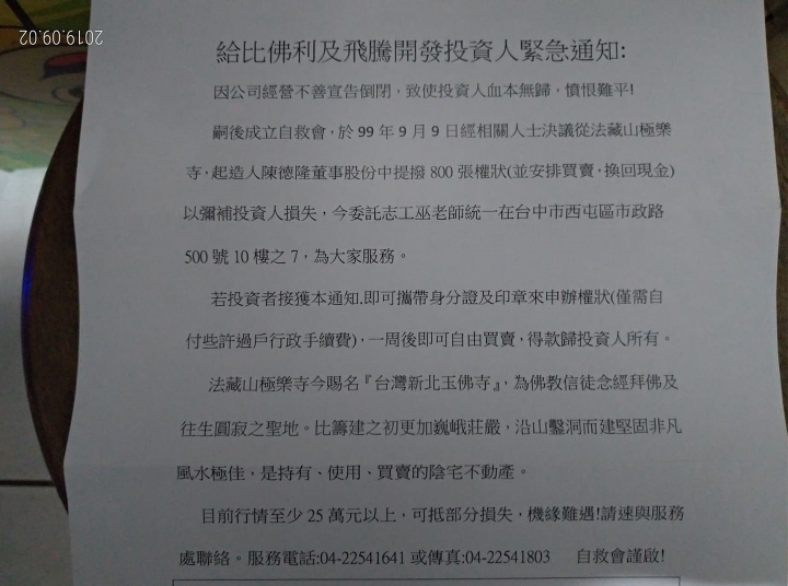 結論就是需要再「斗內 donate」4800元,換一張法藏山極樂寺「合法」的靈骨塔塔位證明