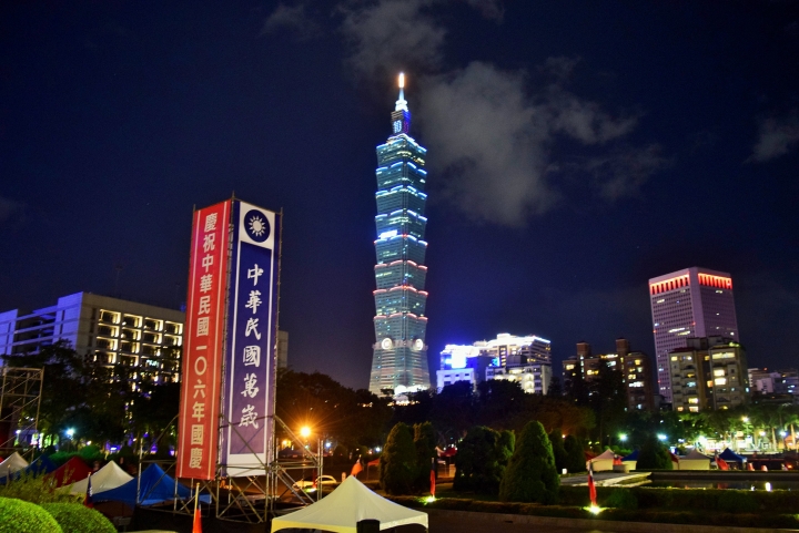 國慶日前夕 用完餐 帶妻小 看看國旗 看看國父