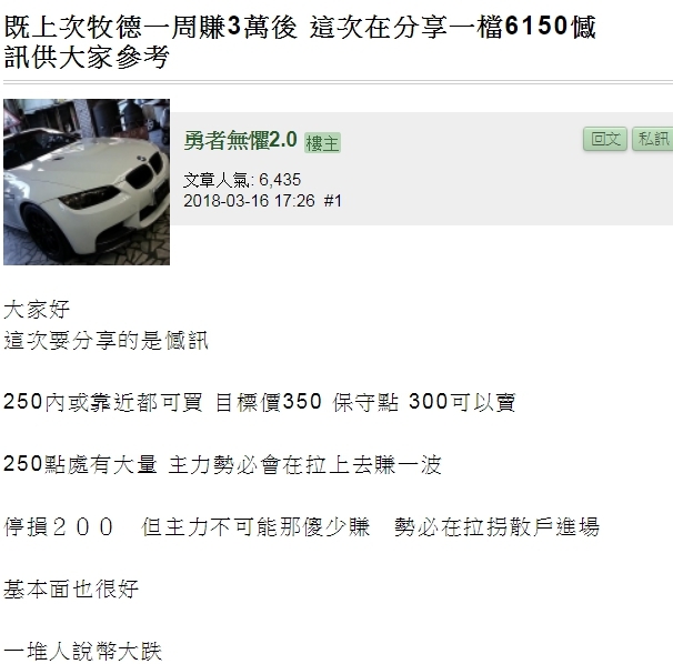 謝謝眾人來信但我黑單他了又沒帶人放空只會在那馬後炮實在對我沒任何影響或許他是追在我喊的12 後面的追高者 買在14...真不好意思 但推文都有提醒別追高...................又沒收費你在那當臭酸0v0回你的ptt版上吧 這邊只會討論 你不看空也不看多 能幫助甚麼QQ~01的黑名單很好用我只有私信回給20人唷上百封密我@@