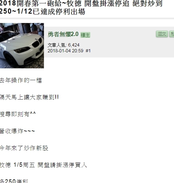 我是不知道那種咖 只會唱雖當有趣也才回信給20個人硬說1000人 傻眼貓咪0.0我猜是他可能我之前報的大賺的都沒跟到空台郡 牧德一周賺然後剛好剛好跟到走勢不如預期的 心理在不爽吧??還是根本沒買阿又或者3073起漲點又或者保守者21出XD事前預告了 連掛兩天漲停追又或者3073起漲點 沒跟到??三四根漲停XDD又者上個月的6150一張賺7萬3/16發文 3/19有開盤買進價是280放到我說的350賣3/21就達到350 紀律是350 最高也有到359不到一周1張賺7萬又或者是你沒跟到開春第一砲牧德???一張一周賺快3萬又或者最經典的放空台郡你沒跟到真的非常抱歉 你雖小沒跟到 一張大賺好幾根的但你的行為舉止能幫助到人嗎?一張不如走勢 也帶出了 你是不是一張10塊 跌這樣就哭哭喊喊還有人說抬轎 我真快笑死你知道力麒股本多大嗎?真他很佩服不會多空討論 整天在那當臭酸的對了 我很疑惑 你自稱你會寫程式卻分享股票都沒分享???你是賠多大阿 寫程式還會跟我單 ??又剛好跟到沒如走勢的麻煩程式哥哥多分享 別整天廢話連篇嘲笑有買力麒的死好????真覺得酸民無所不在