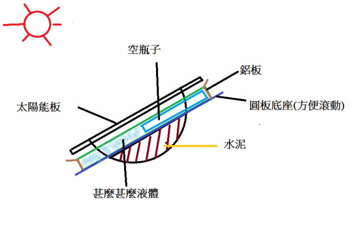可以考慮使用橢圓形類似小耳朵形狀物體,將其內面貼滿小鏡片,全部射向太陽能板,原理只要太陽能板在橢圓之其中一個焦點附近,這樣太陽移動時聚焦點不會偏差太多,應該還可以照在太陽能板上,