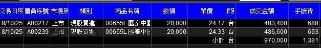 幫版主按讚 我看了許多財經節目 找了許多資料 無意間看到mobile 剛註冊一個月起初在各版亂竄 今天終於找到專門A股ETF討論版 最近國泰中國A50正2買賣賺一些感覺陸股底部已近 震盪好賺 也知道人為盤特性 跟1980~1995台股感覺差不多目前重心轉向A股ETF 可惜近月我的發文未在此處發表 以後會常來前兩天賣出後 昨日又補進一些 如圖