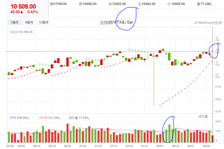 美股上週週綠幾乎呈橫盤 本週轉紅燈非盤即漲 台股本週即將收月線 目前各指數月關鍵分別為:加權:10422期貨:9988 電子:426.27 金融:1083 櫃買:136.27 外資今日整體籌碼小買 賣權增4千多口 以目標部位仍看避險 就個股結構輪動來看 心態空先當短空看待即可 一旦心態轉多 還是須偏多操作 今日主要由金融發動 加上陸股的強勁表現 讓指數維持在支撐以上震盪 加權止漲訊號點仍以日線有效收破10498為基準 櫃買以破138.07 未破前不看過空 只是來到箱頂附近 要一次過機率不大 大盤慣性即使過也很容易先回檔再上 9月命運還是得看周四月線如何收再說