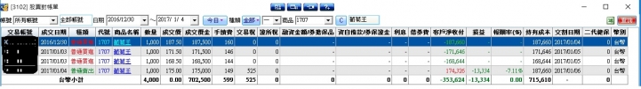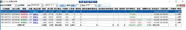 總損益 -13334 + 7661 + 13000(尚未實現利益) = 7327元(1/5之損益,小賺)