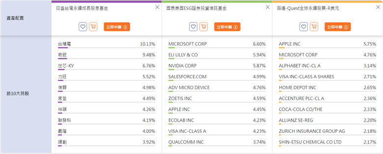 我會拉他的前10大持股出來比較