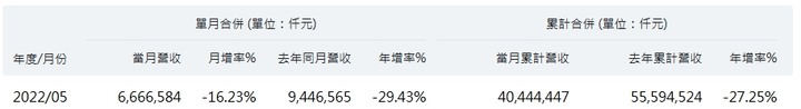 國發會指出,受到中國大陸防疫封控、俄烏戰爭、全球通膨壓力升溫等影響,壓抑全球經貿成長動能,企業信心亦受挫,5月製造業銷售量指數年增率、製造業營業氣候測驗點均下滑,惟貿易面指標則受惠5G、高效能運算、車用電子等應用需求擴增,仍保持強勁成長;內需部分,相較去年同月升級三級警戒,今年國內漸與疫情共存,批發、零售及餐飲業營業額較去年同期擴增。