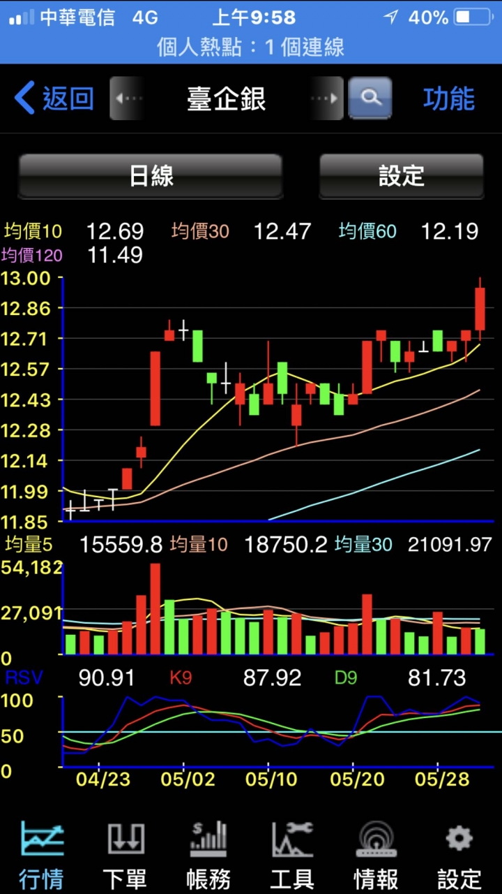 taiming0314 wrote:請教:台企銀連續高漲,還有人會持續買進嗎?先暫停等除權息過後會不會比較好? 股市不就是買賣各自評斷嗎?目前感覺起來是因為避險關係而資金轉進~~~截至目前公司的營收獲利都還算在合理的成長範圍內~~~但是不是適當的買進時機?????您可以比較台企銀 / 玉山金 / 上海銀目前的EPS跟配股配息跟營收成長現況~~~相信應該會有些方向吧
