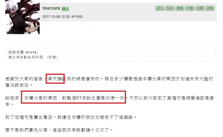 ZacLee wrote:T老闆實在是太認真的...(恕刪) 忽然覺得憐憫T老闆 跟工讀灰,被嘎成這樣,還被人酸=======================希望空空樓的寶寶都因此醒了,被嘎正常的很,記取經驗就好,只要活著,到處是機會。===========最後恭喜樓主賺錢