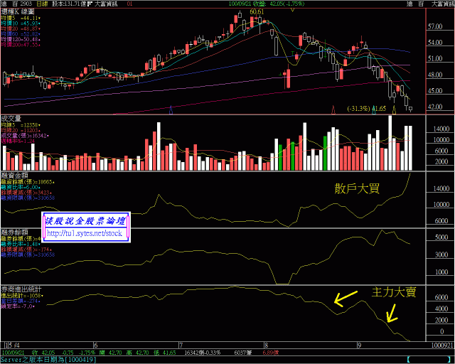 kanemochi wrote:不好意思請問一下...(恕刪) 代表必死股 融資就是散戶一直買外資就是大戶都出走等於大戶丟給散戶接最後沒有主力撐盤 最後散戶多殺多出來最後融資追繳令出現就知道跌的速度有多快 有多慘了~~~~~真不敢想像這隻會怎死????沒有業績 亞東集團又都不怎樣全部倒貨出清而已~千萬不要執迷亞東集團旗下有許多支股票 以下都幾乎都快跌停了 剛看遠百 到40了 新波段低點1.亞泥2.遠紡3.宏遠4.東聯5.裕民6.遠東銀7.遠百