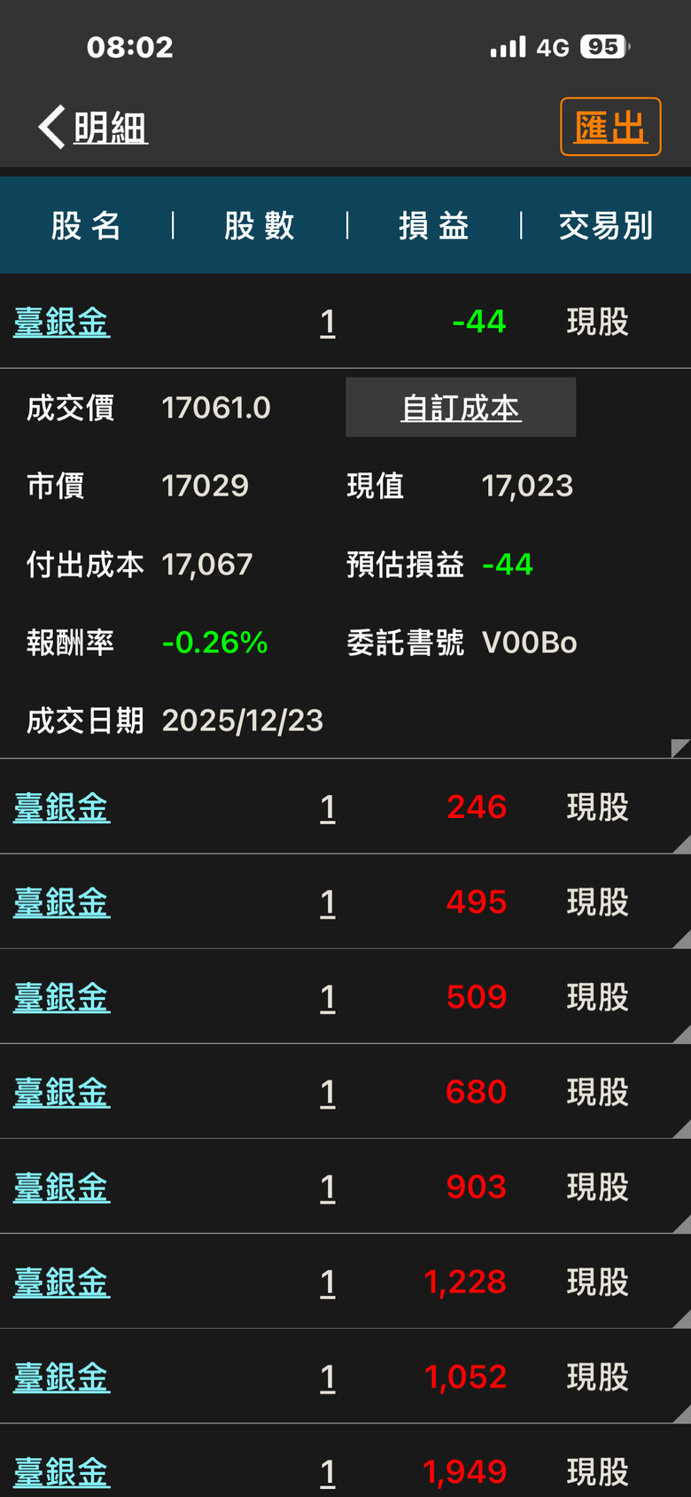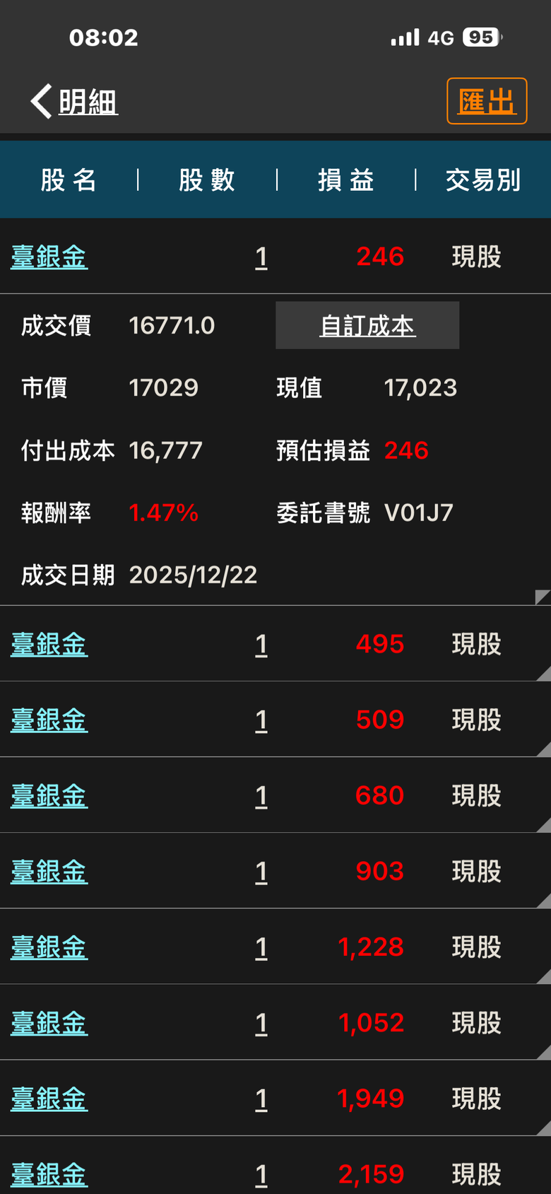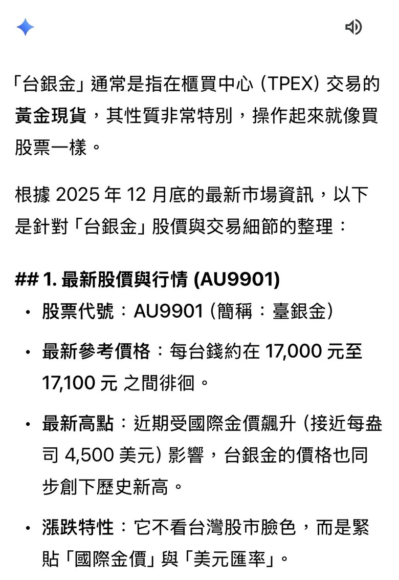 M013782989 wrote:(恕刪) AI還是比我笨他沒有辦法完全成列出台銀金的優點台銀金跟台銀的黃金存摺一樣都是台銀發行的,而且都可以領實體的黃金但是台銀的黃金存摺,獲利卻要收所得稅而且黃金存摺,每筆交易的手續費比較高再來黃金存摺的買賣盤差比較大上面這些都是黃金存摺的缺點但是台銀不會告訴你這些知識性的問題要有懂知識的人來教