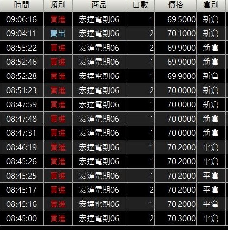 而今天看有70元左右的價位,我再續買,結果買到變多方了,最多持倉+9口,但一拉上來,就趕快跑了。