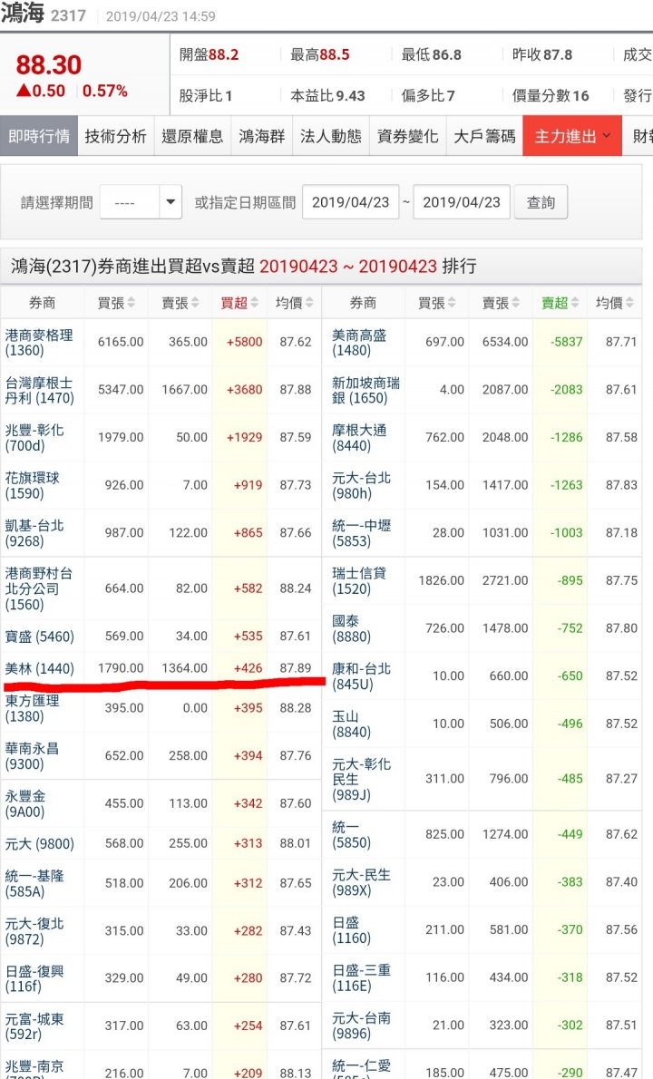 halu.lin wrote:調降評等但又是鴻海這波上漲的買超王-美林-又在偷偷進貨了,笑屎大笑不相信鴻海會漲的及解套出脫的散戶,年底再看鴻海股價應該會氣屎大笑 其實你對調降評等的理解有錯美林在4/3~4/18每天都大買, 但是4/19之後就持平不買了也就是說調降評等後, 美林對鴻海的做法也跟著變了, 我認為沒有言行不一的問題(至少暫時是)簡單說, 外資調評等不能只看字面意義, 必須對照前後行為變化才知道是否為真