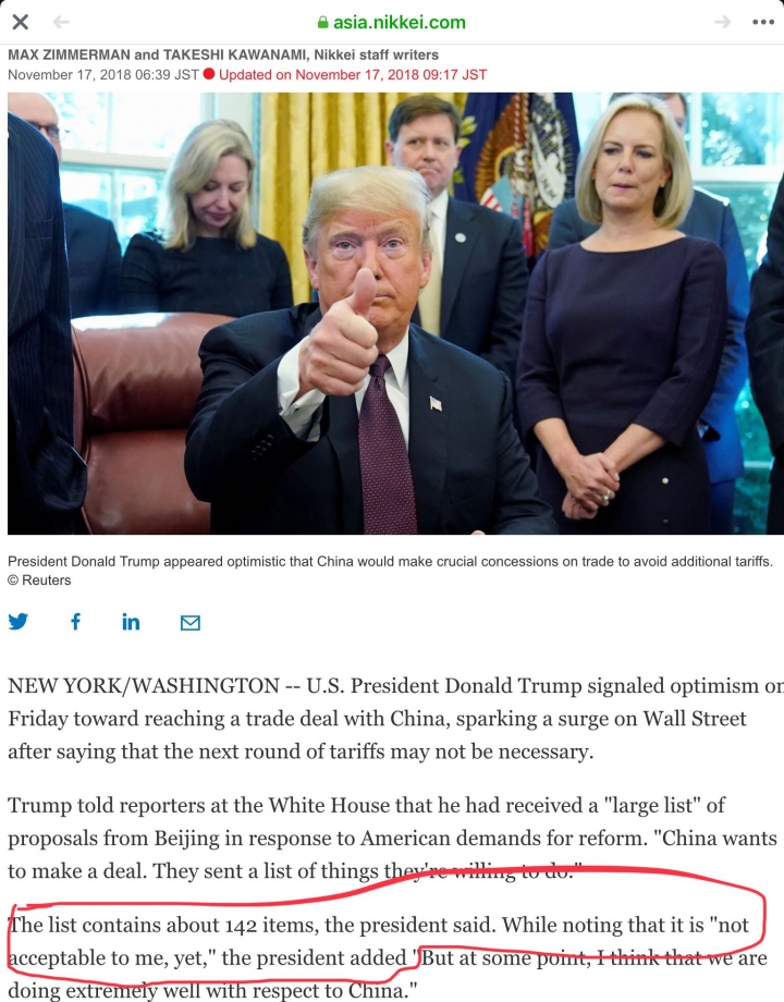 中國遞交的讓步清單落落長有142項,但川普依舊不太滿意。