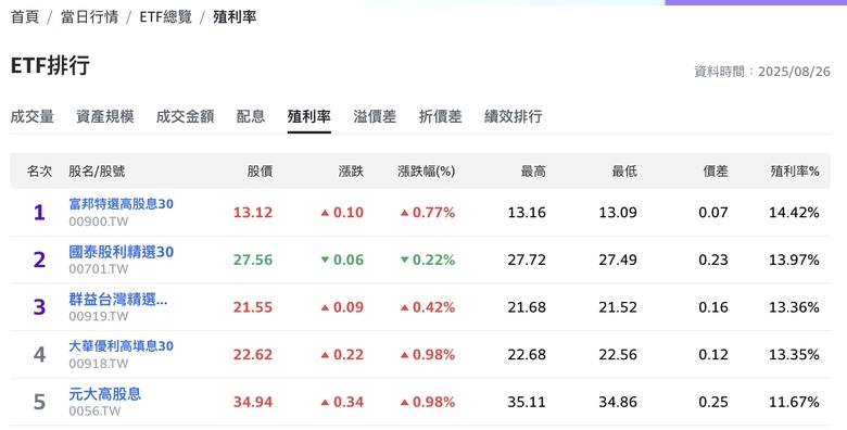 如果樓主還夠年輕那建議主力是放在市值型ETF為主比較有利像是0050 006208這種高股息比較適合中年後 需要穩定現金流的人 而且高股息比較熱門的是0056 00878 或是 00919 之類的 ETF趨勢也是往人多資金多的標的挑選為主為最佳