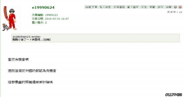 用户呢称 wrote: 我來談談中國的民...(恕刪) 寫的真的有條有理你的很多觀點真的不錯~對於我們以西方觀點看中國是非常不同的雖然我不一定同意你的觀點但多看一點不同想法~才會看得深~看的遠~不過這棟樓已經被回報魔人回報了...所以可能會倒樓...最好備份一下你的文章~因為寫的真的不錯~