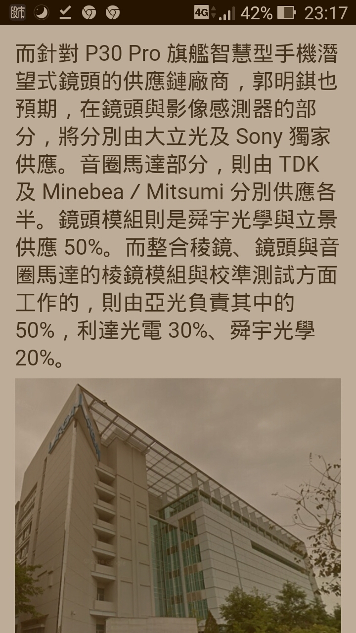 bryant0220 wrote:原來亞光只是second...(恕刪) 以華為扶持大陸供應商特性,亞光能打入稜鏡二供供應商,的確了得,而稜鏡是玻璃材質,剛好是亞光強項。但郭先生和大陸媒體差異是亞光沒介入稜鏡模組。鏡頭是鏡頭,稜鏡是稜鏡(如圖片透明三角型),兩個是不相干。