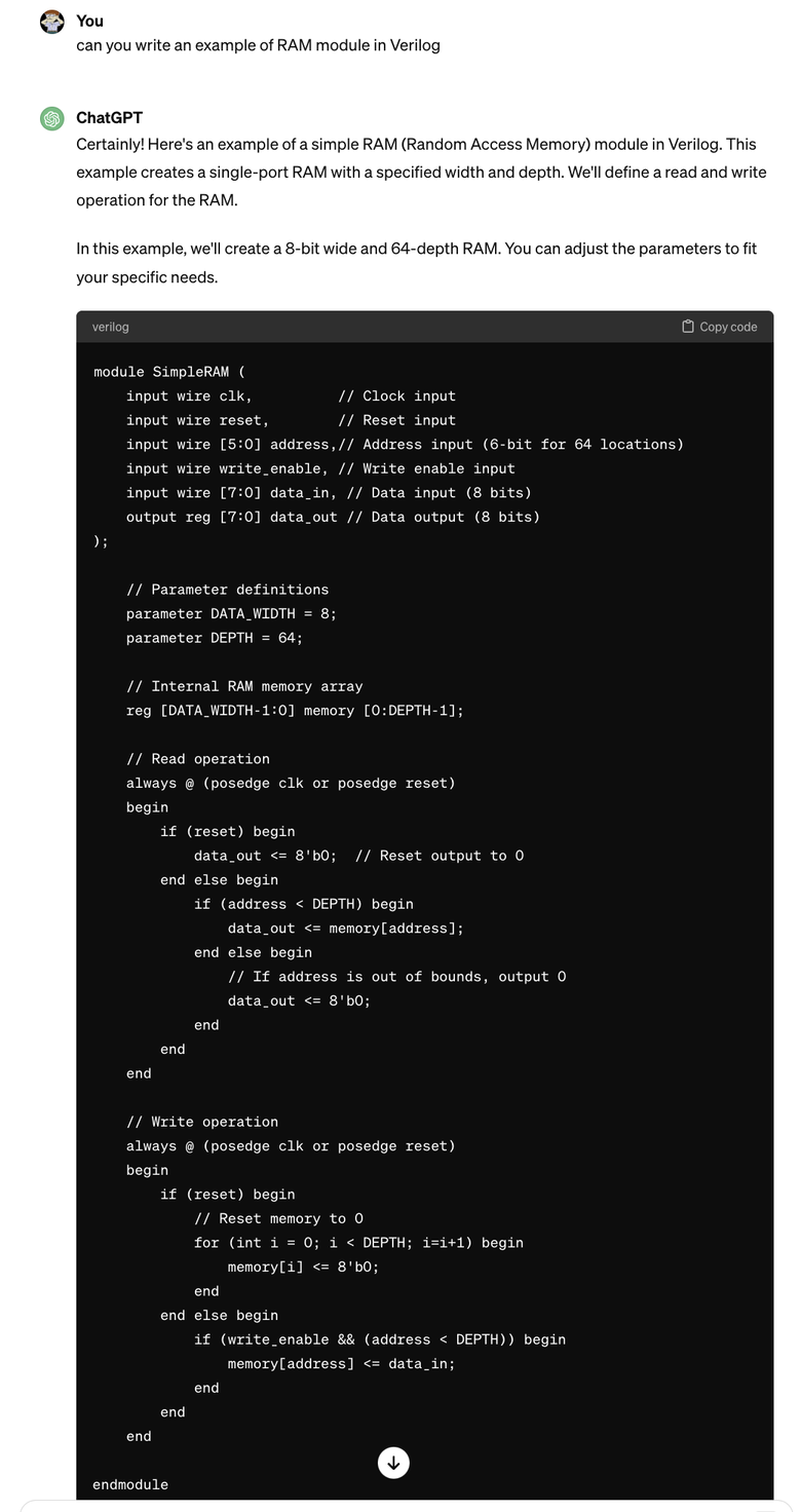 就叫 chatGPT 示範用 Verilog 刻一個,結果3秒鐘就刻一個給我。