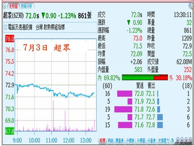 6月24日的超眾被外資與投信聯合賣超255張,不過大盤即將落底,只要超眾的股價在7月10日公佈6月營收前能穩在75.5元之上,就是好事,超眾的股價就有機會再創幾年來新高價,