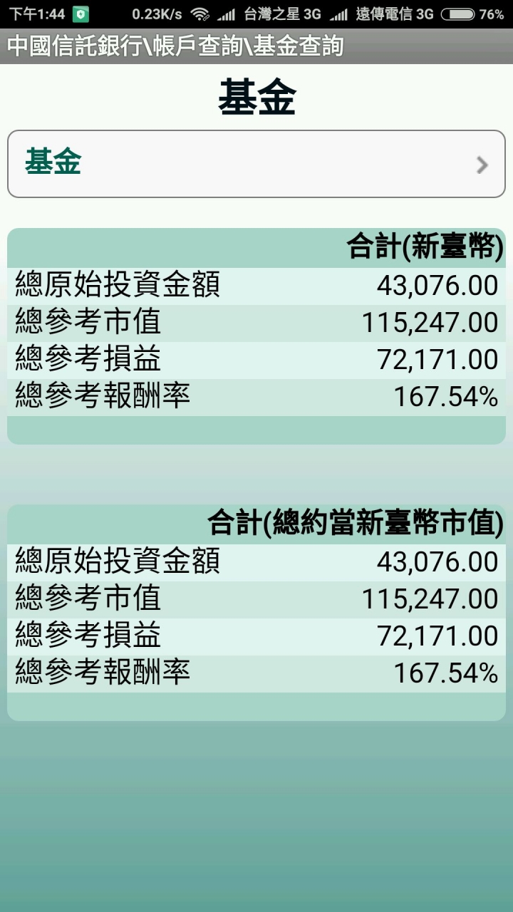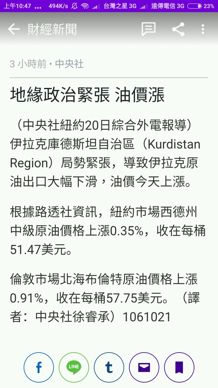 coafort wrote:我列舉一下大大發言時...(恕刪) 這代表我很重視油的訊息,有空就上來po一下,才能知己知彼百戰百勝,路才會長,你也可以去看其它討論議題,都有我的見解,尤其是金融討論交流,這檔只是投資其中一個美股,獲利表現都破100%以上,我至今還不想賣,因為還有高點,我多空都做啦,有空我再po其他投資給你參考,一路投資沒有輸過,因為我用攤平原理進行投資,量力而為,做自己有把握的事,懂自己其實是最重要,需克服恐懼心理戰,而不是市場搖擺不定訊息去影響心情,看好就壓重金,再留50%資金運用或是攤平,漸漸地就有感