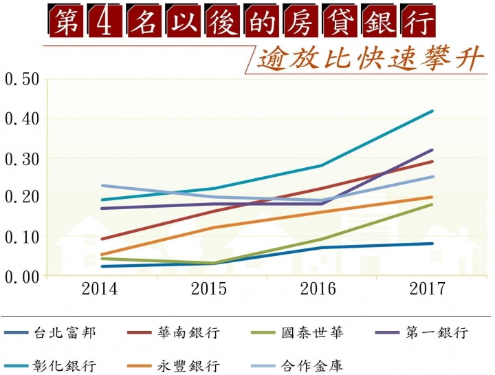 例如去年第4季 , 公營銀行的房貸逾期放款比就不斷增加