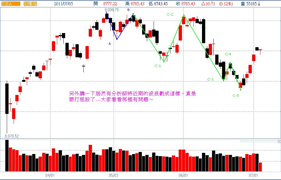 另外講一下居然有分析師將近期的波浪劃成這樣,真是要打屁股了...大家看看那裡有問題~