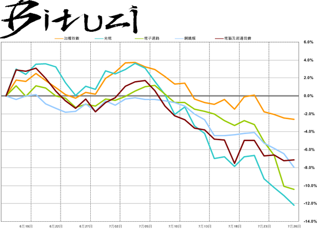 光電類、電子通路、鋼鐵類和電腦及週邊設備