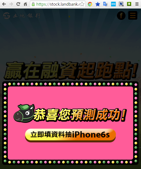 1. 活動期間內進入「土銀證劵,穩鈔勝算!」活動網站,完成低利馬王神預測遊戲後填寫資料。