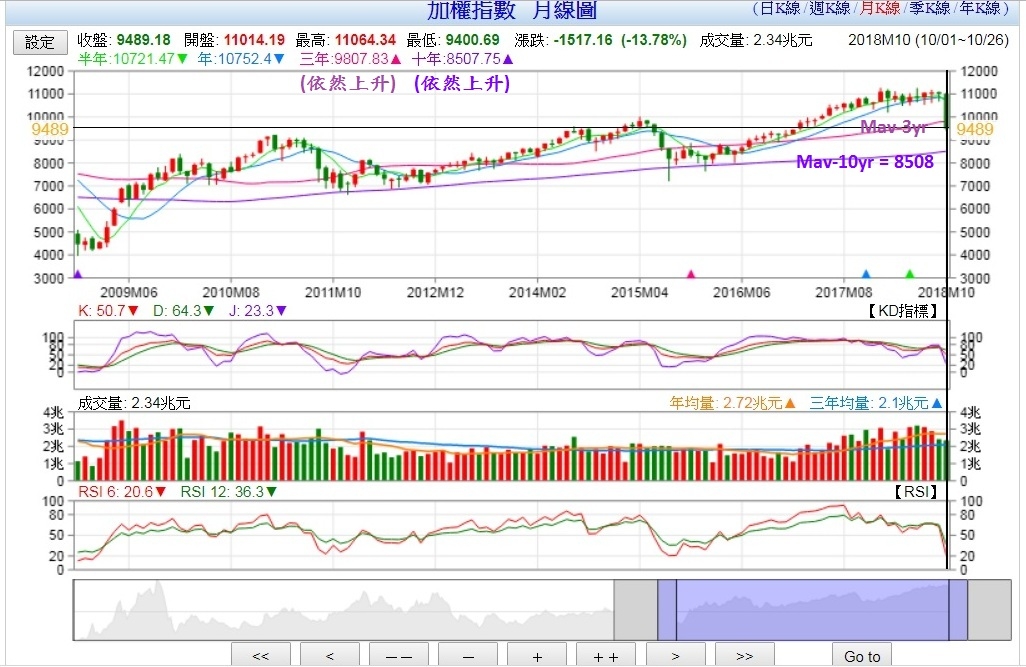 大盤指數 @Mav-3yr(9773上下) and Mav-10yr(8508上下)之間 【詳如下二(月線)】